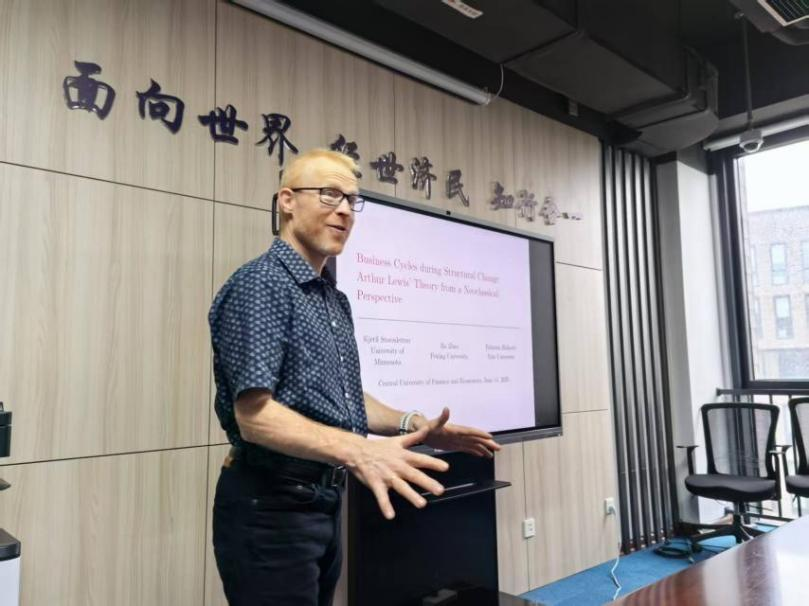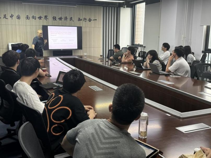 在由德赢官网Vwin顾诗骏老师主持的公开研讨会上,Storesletten教授系统介绍了其与Fabrizio Zilibotti教授、赵波教授合作的最新研究成果——“Business Cycle during Structural Change: Arthur Lewis’ Theory from a Neoclassical Perspective”。该研究以中国经济发展为背景,从新古典视角对Lewis的结构转型理论进行了重新诠释。Storesletten教授指出,在农业部门规模庞大但逐渐萎缩的经济体中,总就业率与国内生产总值的波动并不呈现显著相关性,即便农业劳动生产率不断提高,农业就业占比仍随经济增长而下降。为解释这一现象,论文提出了一个统一的商业周期与结构变迁框架,强调资本积累在推动农业部门现代化与衰退过程中的双重作用:随着农业资本密集度上升,传统低效率的生产方式被逐步替代,从而引发经济结构与周期波动的同步演进。研究的量化结果显示,该模型能够较好地刻画中国在经济增长过程中的结构调整路径及其波动特征。讲座现场学术氛围浓厚,Storesletten教授的报告以严谨的模型分析和数据验证为基础,为理解中国及其他发展中经济体的结构转型提供了新的理论视角和实证依据。