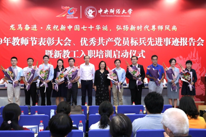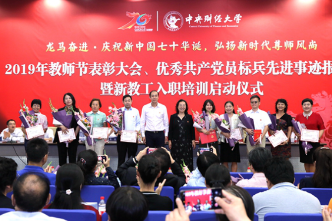 9月10日下午,德赢AC米兰官网在学术会堂402举行教师节表彰大会、优秀共产党员标兵先进事迹报告会暨新教工入职培训启动仪式,庆祝第35个教师节,表彰在教书育人等各项工作中取得突出成绩和从教满30年的教职工。校党委书记何秀超、校长王瑶琪、校党委副书记梁勇、副校长史建平、总会计师蔡艳艳,副校长孙国辉、马海涛,校长助理李涛出席大会。大会由校党委副书记、教代会执委会主任、工会主席陈明主持。