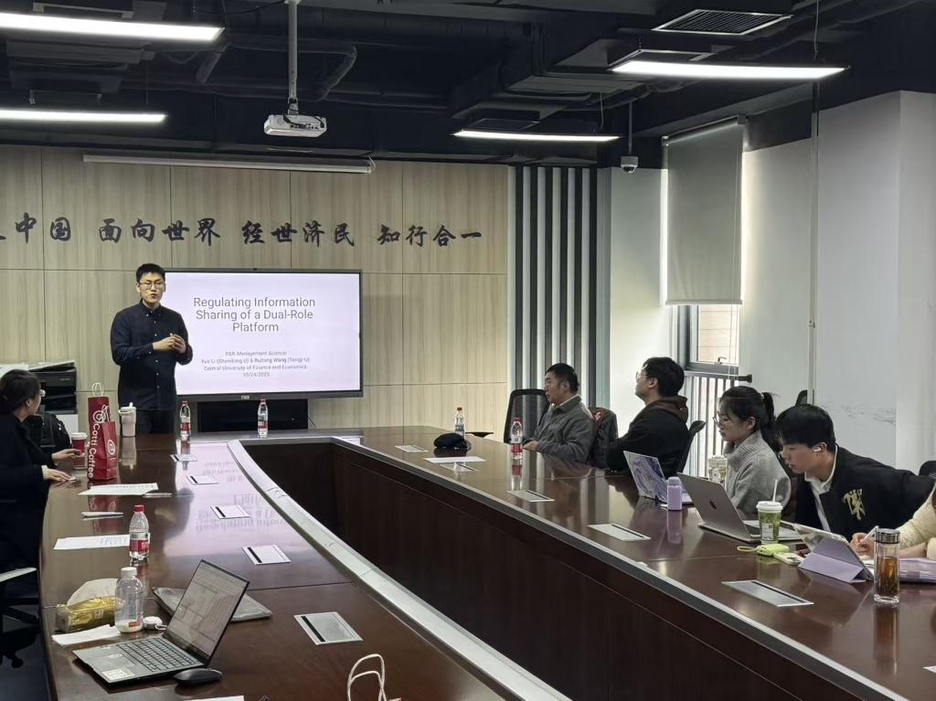 2025年10月24日周五下午,德赢官网Vwin“中青年学者讲座”在沙河校区学院楼11号楼308会议室成功举办。本次讲座特邀同济大学经济与管理学院副教授王睿通,就平台经济中的信息共享策略与规制问题带来题为“平台双重角色下的信息共享策略与规制研究”的学术报告。讲座由德赢官网Vwin龚雅娴副教授主持,德赢官网Vwin多位教师及三十余名学生共同参与。
