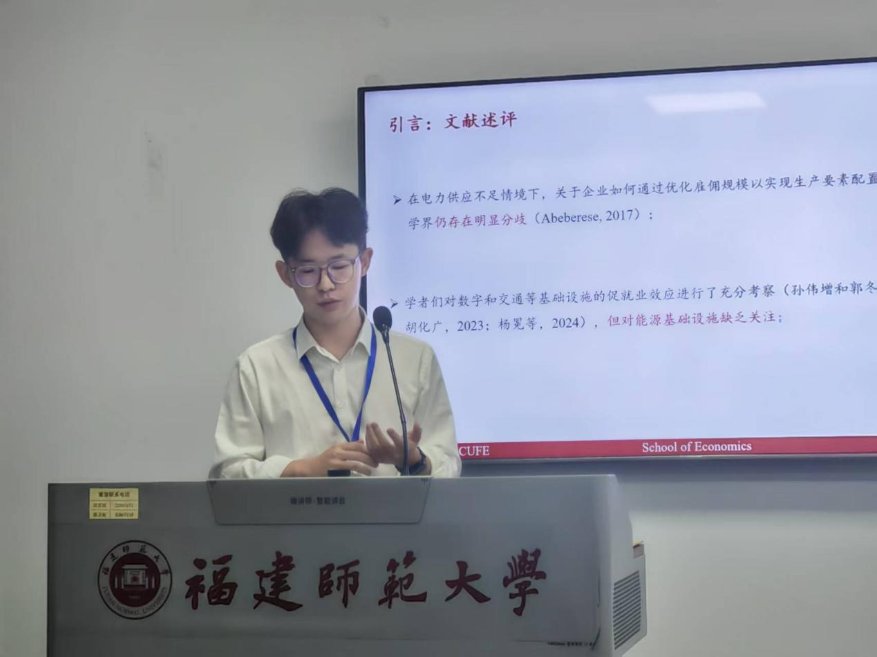 夏必川同学汇报的论文题目为《电力供应的稳就业效应研究:理论与中国经验》,他的研究聚焦电力供应对于企业就业的影响,通过构建理论模型与进行实证分析,发现电力供应质量提升能使企业就业规模显著扩张,这种影响在企业层面主要通过扩大企业生产规模(产量效应)和减少企业外购中间品(中间品替代效应)两种渠道来实现,在地区层面主要通过吸引新企业进入,提升本地就业容量渠道来实现。评委老师对论文工作给予充分肯定,同时也给出建设性意见,使文章质量进一步提升。