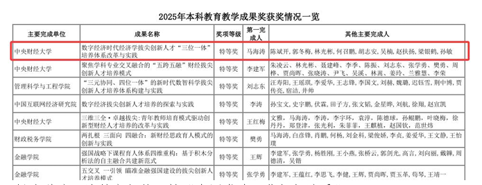 基地持续深化“顶天-立地-强基”三位一体育人模式。《数字经济时代经济学拔尖创新人才“三位一体”培养体系改革与实践》荣获德赢AC米兰官网教学成果奖特等奖;《拔尖创新人才自主培养的体制机制探索——以德赢AC米兰官网数字经济时代经济学拔尖人才培养基地为例》获评德赢AC米兰官网教育教学质量保障体系与质量文化建设优秀案例。